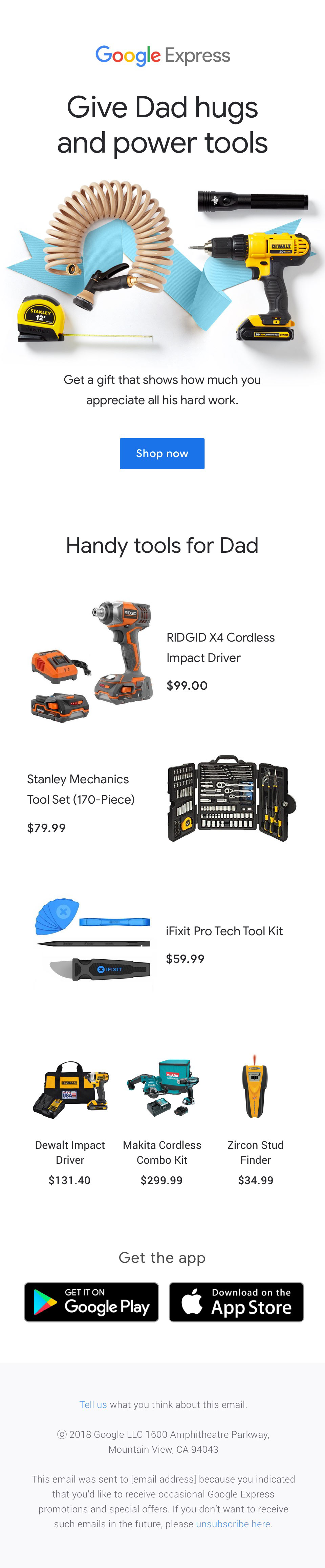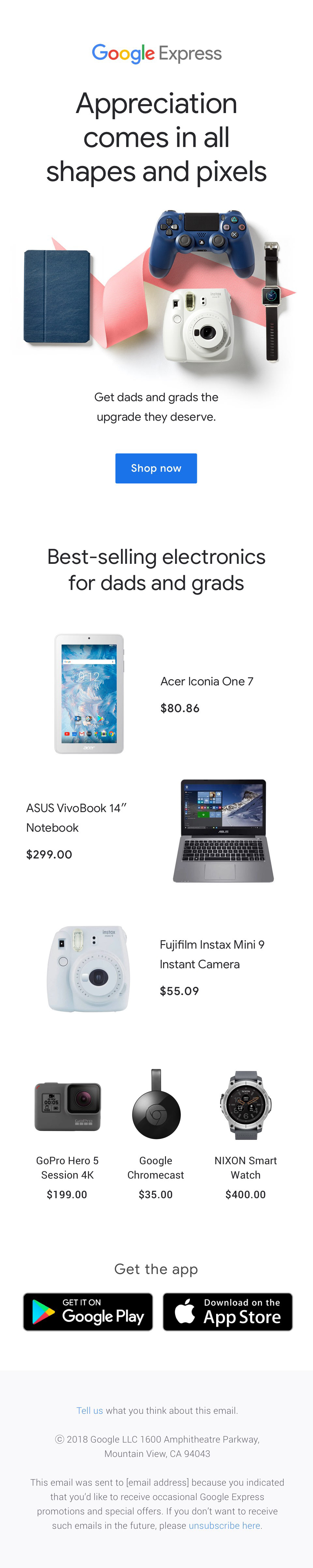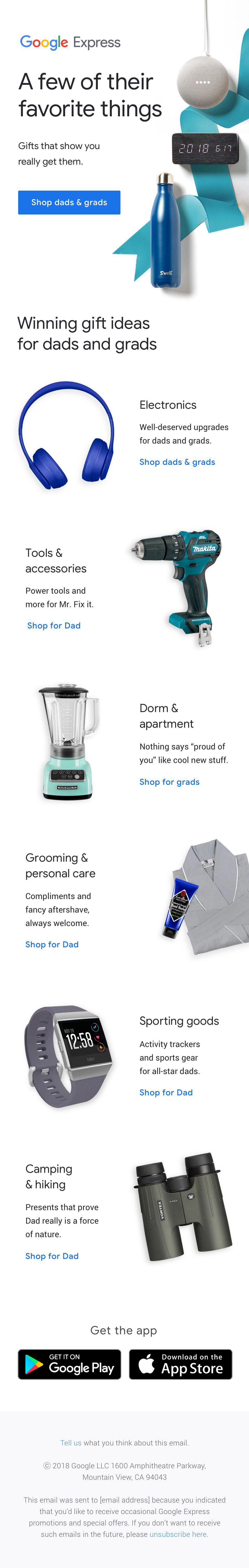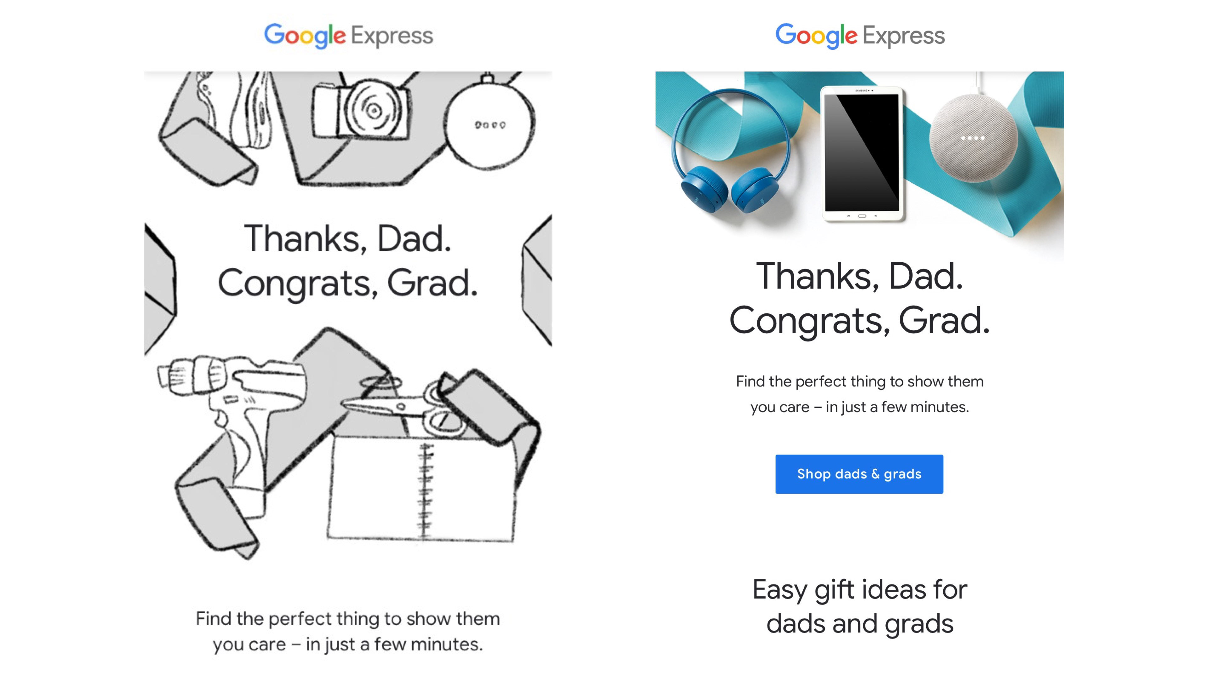 I helped concept and then execute the 2018 Dads & Grads seasonal marketing campaign for Google Express (GX).